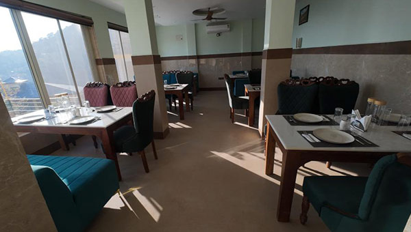 Indulge in a delightful culinary journey at the in-house restaurant of GK Paradise Village Resort & Cottage Dharamshala, where fine dining meets breathtaking Himalayan views. Designed with expansive glass windows, our restaurant offers mesmerizing views of the Dhauladhar mountains, creating the perfect ambiance for a memorable dining experience in Dharamshala.