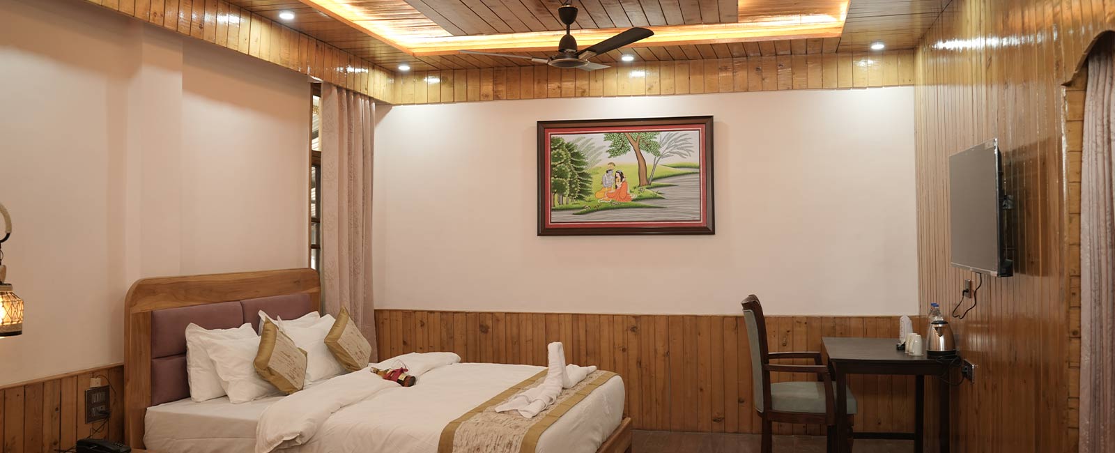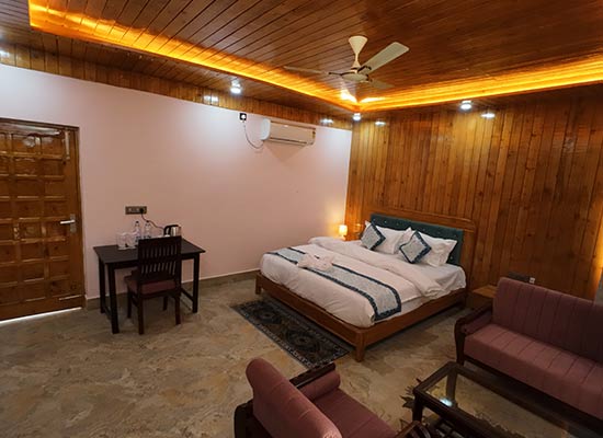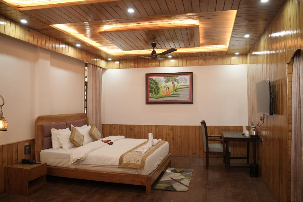 When you book your stay at our resort in Dharamshala, you enjoy a range of modern in-room amenities including complimentary bottled water, tea & coffee maker, mini refrigerator, spacious wardrobe, premium bedding, and daily housekeeping services. Every detail is curated to ensure a relaxing and hassle-free stay in the lap of nature.